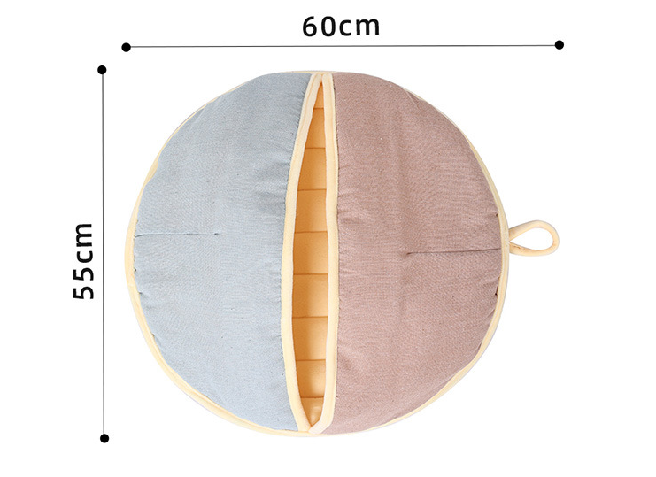 Round Fan Cotton And Linen Wool Warm Semi Enclosed Pet Nest For Cat Small Dog